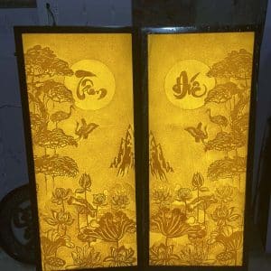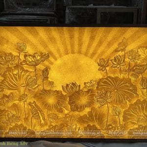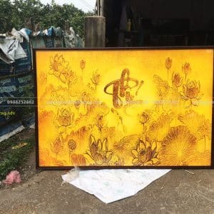 Bộ ba tranh trúc chỉ hoa sen kết hợp trăng làm bằng thủ công rất tỉ mỉ, sắc nét từ chi tiết.Đây là dòng tranh cao cấp