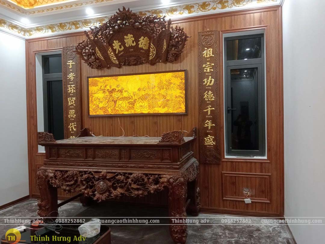 Nên treo tại nơi thoáng mát, tránh tiếp xúc trực tiếp với ánh sáng mặt trời hoặc nơi ẩm ướt như nhà vệ sinh. Tranh phù hợp treo ở phòng khách, phòng làm việc hoặc phòng thờ, nơi trang nghiêm, thể hiện phong cách truyền thống.