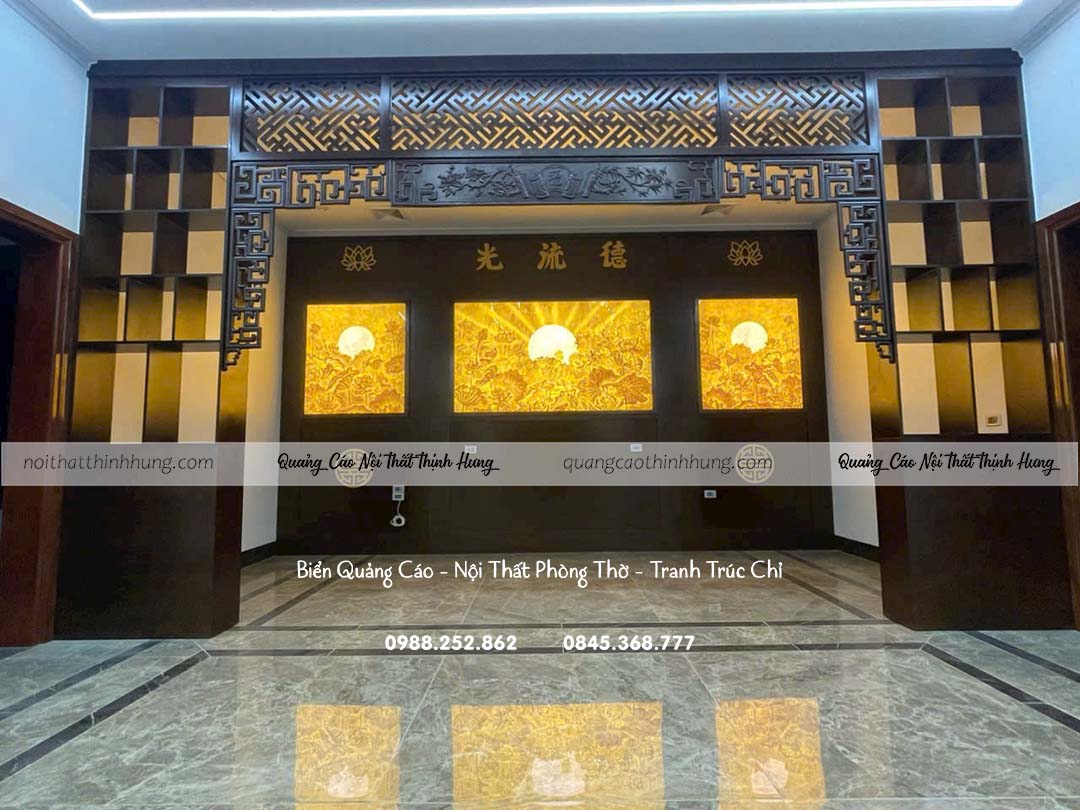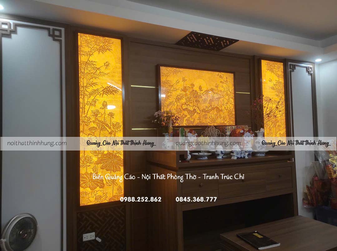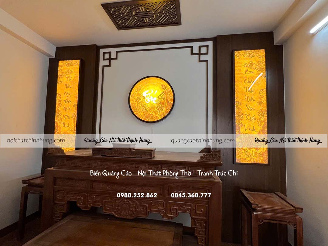 Phòng thờ là không gian linh thiêng, nơi thờ cúng tổ tiên, nên chọn tranh trúc chỉ có ý nghĩa về tâm linh, phong thủy và gắn liền với các giá trị truyền thống. Các mẫu tranh chân dung tổ tiên, hoặc hình ảnh tượng trưng như cây trúc, núi non thể hiện sự vững chắc và đoàn kết nội bộ.