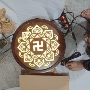 Tranh trúc chỉ Mandala còn được thiết kế hiện lên trên nền ánh đèn xuyên qua, mang lại cảm giác trang nghiêm nhưng rất an lòng. Tùy theo kích thước không gian phòng thờ, các loại tranh sẽ được đặt hàng riêng theo yêu cầu.