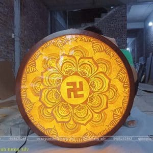 Tranh trúc chỉ Mandala còn được thiết kế hiện lên trên nền ánh đèn xuyên qua, mang lại cảm giác trang nghiêm nhưng rất đỗi an lòng. Tùy theo kích thước không gian phòng thờ, các loại tranh sẽ được đặt hàng riêng theo yêu cầu.